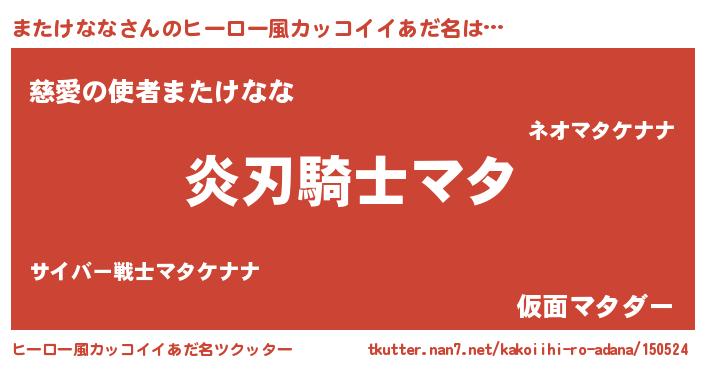 | ポケモン風あだ名 | 『ヒマタケナナ』『マタゴンZ』 |