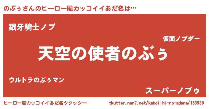 | 男性向けラノベタイトル風あだ名 | 『うちののぶぅが世界を掌握している!』 |