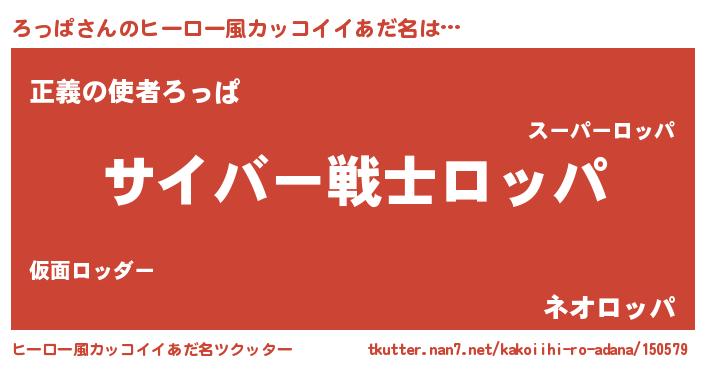 | 男性向けラノベタイトル風あだ名 | 『転生したらろっぱだった件』 |