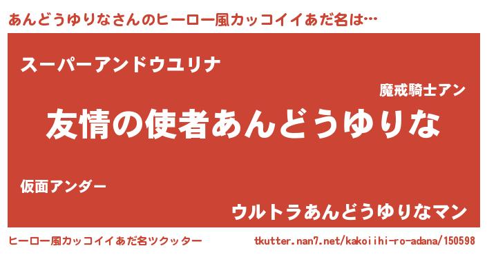 | 胡散臭い通販商品みたいなあだ名 | 『100人中100人が認めたイリジウム磁石…その名も「あんどうゆりな」』 |
