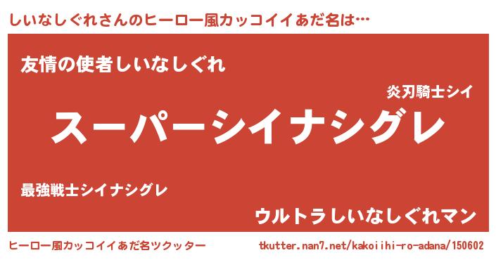| 男性向けラノベタイトル風あだ名 | 『シイナシグレスレイヤー』 |