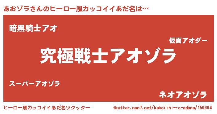 | 男性向けラノベタイトル風あだ名 | 『Re:あおゾラから始める異世界生活』 |