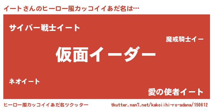 | 男性向けラノベタイトル風あだ名 | 『この素晴らしい世界にイートを!』 |