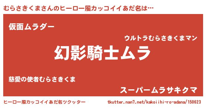 | 男性向けラノベタイトル風あだ名 | 『むらさきくまの嫁は女の子じゃないと思った?』 |