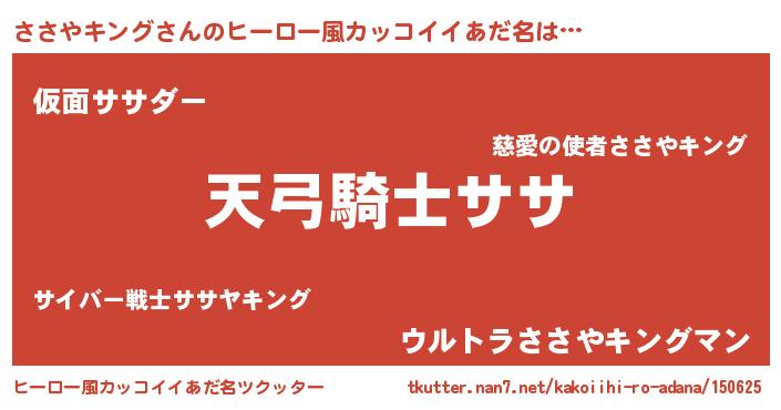 | 男性向けラノベタイトル風あだ名 | 『ささやキングの嫁は女の子じゃないと思った?』 |
