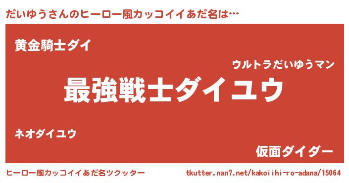 | 男性向けラノベタイトル風あだ名 | 『Re:だいゆうから始める異世界生活』 |