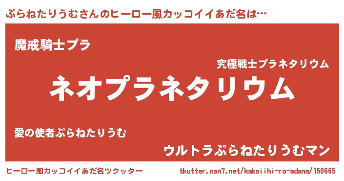| ポケモン風あだ名 | 『ゼニプラ』『ヒプラネタリウム』 |