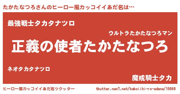 | 男性向けラノベタイトル風あだ名 | 『おまえをオタクにしてやるから、俺をたかたなつろにしてくれ! 』 |