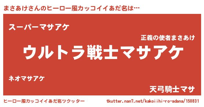 | 男性向けラノベタイトル風あだ名 | 『マサアケスレイヤー』 |