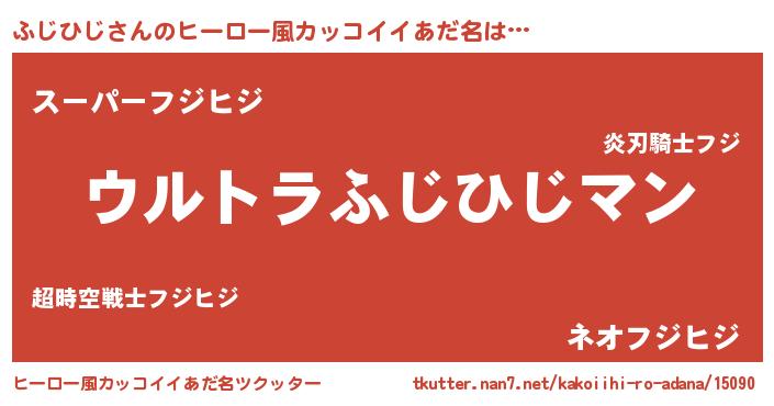 | 男性向けラノベタイトル風あだ名 | 『ふじひじ~年齢イコール彼女いない歴の魔法使い~』 |