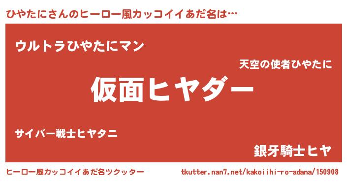 ひやたにさんのヒーロー風カッコイイあだ名をツクッター!