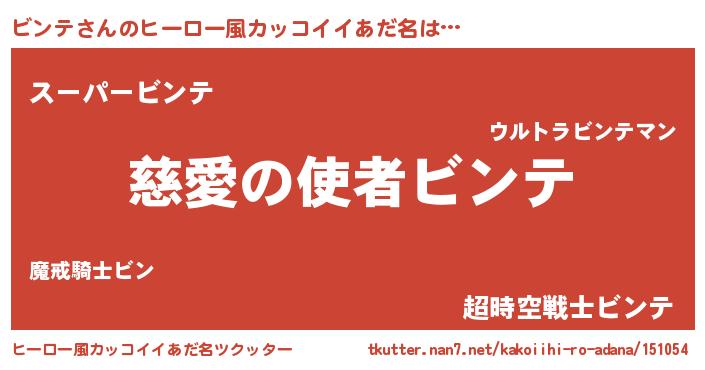 | 男性向けラノベタイトル風あだ名 | 『ビンテ~年齢イコール彼女いない歴の魔法使い~』 |