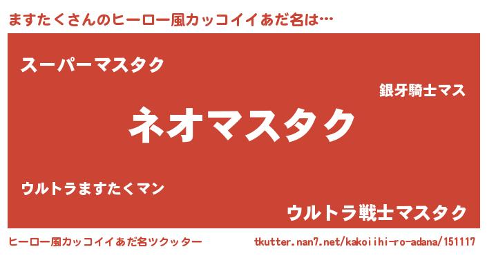 | 男性向けラノベタイトル風あだ名 | 『ますたくという概念が存在しない退屈な世界 』 |