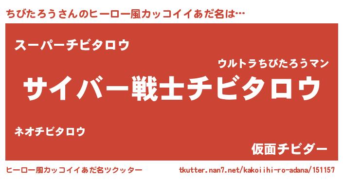 | 男性向けラノベタイトル風あだ名 | 『Re:ちびたろうから始める異世界生活』 |