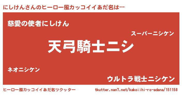 | ポケモン風あだ名 | 『ニシゴンZ』『ヒニシケン』 |