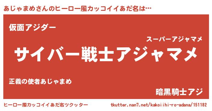 | 男性向けラノベタイトル風あだ名 | 『あじゃまめに滅ぼされるだけの簡単なお仕事です』 |