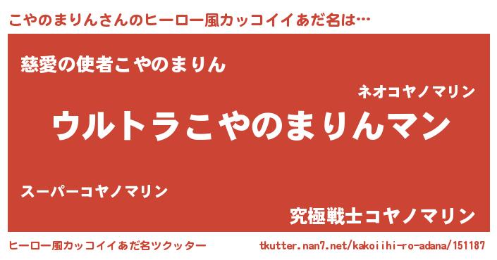 | 男性向けラノベタイトル風あだ名 | 『うちの娘の為ならば、俺はもしかしたらこやのまりんも倒せるかもしれない。』 |