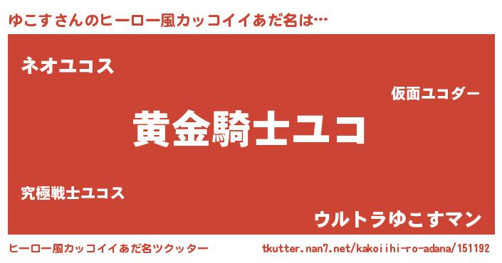 | ポケモン風あだ名 | 『ヒユコス』『ゼニユコ』『ユーコイ』 |