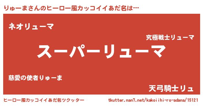 | 男性向けラノベタイトル風あだ名 | 『りゅーまの憂鬱』『緋弾のリューマ』 |