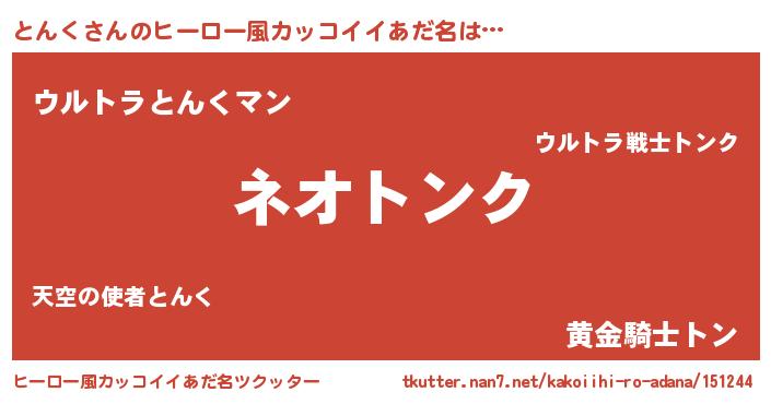 | 男性向けラノベタイトル風あだ名 | 『とんくという概念が存在しない退屈な世界 』 |