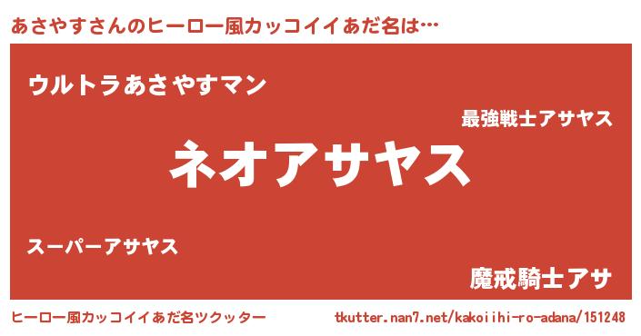 | 男性向けラノベタイトル風あだ名 | 『あさやすという概念が存在しない退屈な世界 』 |