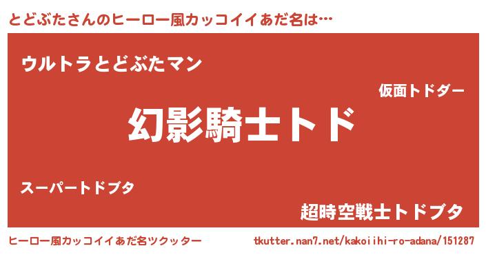 | 男性向けラノベタイトル風あだ名 | 『とどぶたに滅ぼされるだけの簡単なお仕事です』 |