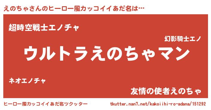 | 男性向けラノベタイトル風あだ名 | 『うちのえのちゃが世界を掌握している!』 |