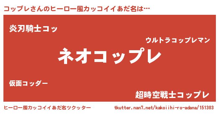 | ヘコむあだ名 | 『コップレ(爆)』『コッ太郎』 |