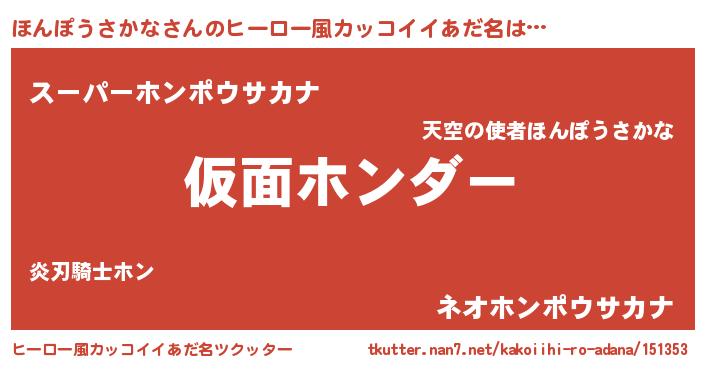 | 男性向けラノベタイトル風あだ名 | 『この素晴らしい世界にほんぽうさかなを!』 |