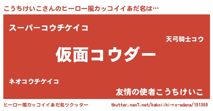 | 男性向けラノベタイトル風あだ名 | 『魔弾の王とこうちけいこ』 |