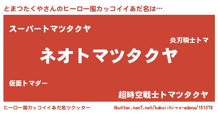 | 胡散臭い通販商品みたいなあだ名 | 『前代未聞の健康食品…その名も「とまつたくや」』 |