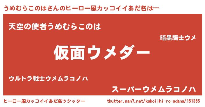 | 男性向けラノベタイトル風あだ名 | 『この素晴らしい世界にうめむらこのはを!』 |