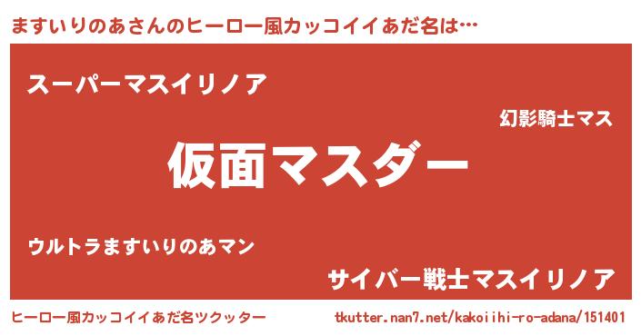 | 意味不明あだ名 | 『住所不定無職ますいりのあ(56歳)』 |
