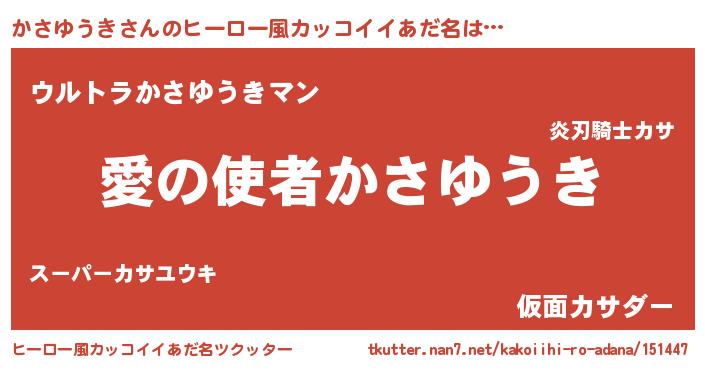 | 男性向けラノベタイトル風あだ名 | 『ノーゲーム・ノーカサユウキ』 |