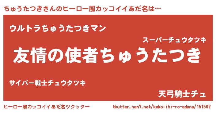 | 女子向けラノベタイトル風あだ名 | 『ちゅうたつき夫妻のなれそめ』 |