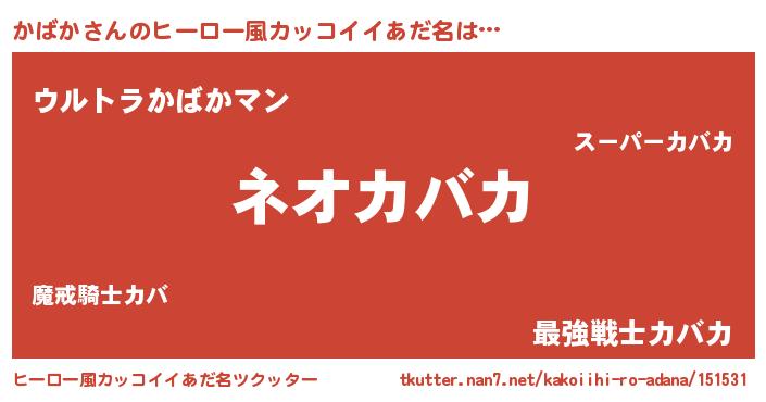 | 男性向けラノベタイトル風あだ名 | 『かばかという概念が存在しない退屈な世界 』 |