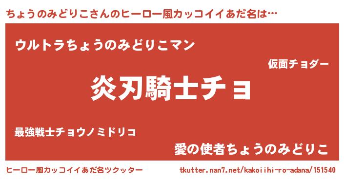 | 意味不明あだ名 | 『とにかく怪しいちょうのみどりこ』 |