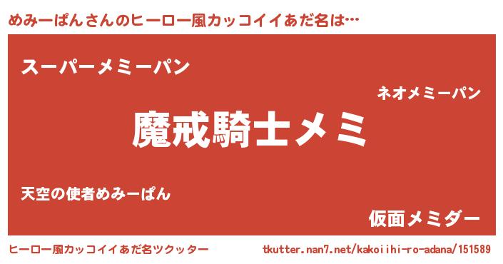 | 男性向けラノベタイトル風あだ名 | 『ダンジョンにめみーぱんを求めるのは間違っているだろうか』 |