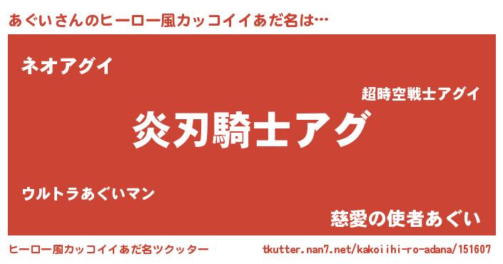 | 意味不明あだ名 | 『とにかく怪しいあぐい』『自称あぐい』 |
