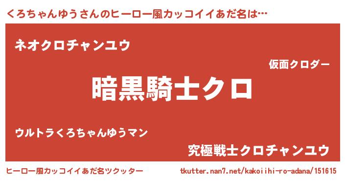 | 男性向けラノベタイトル風あだ名 | 『緋弾のクロチャンユウ』 |