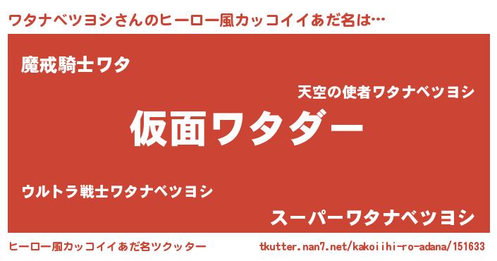 | ポケモン風あだ名 | 『ワータイ』『ヒワタナベツヨシ』 |