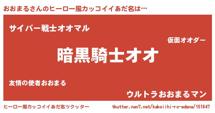 | 男性向けラノベタイトル風あだ名 | 『ダンジョンにおおまるを求めるのは間違っているだろうか』 |