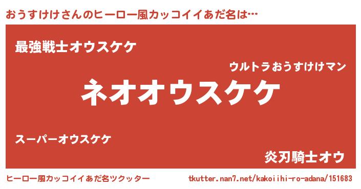| 女子向けラノベタイトル風あだ名 | 『異世界で失敗しない100のおうすけけ』 |