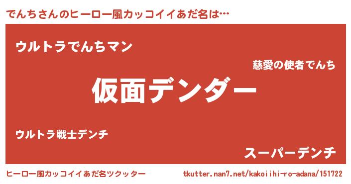 | 男性向けラノベタイトル風あだ名 | 『魔弾の王とでんち』 |