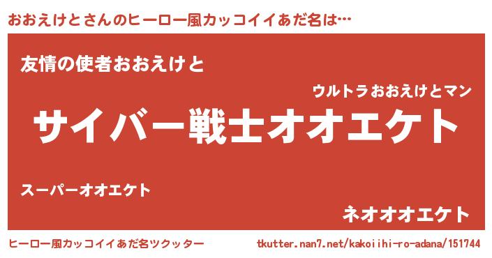 | 意味不明あだ名 | 『自称おおえけと』『永久保存おおえけと』 |