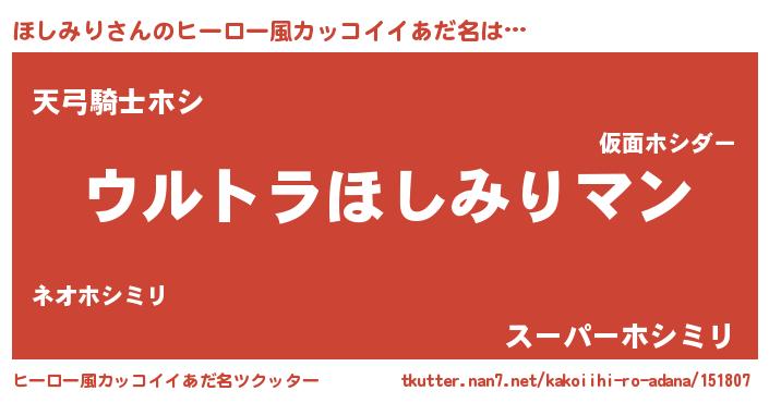 | 男性向けラノベタイトル風あだ名 | 『ほしみりに滅ぼされるだけの簡単なお仕事です』 |