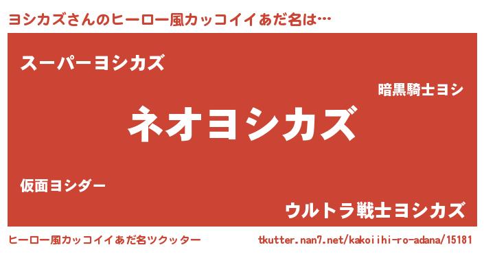 | 男性向けラノベタイトル風あだ名 | 『ヨシカズという概念が存在しない退屈な世界 』 |
