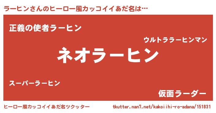 | 意味不明あだ名 | 『永久保存ラーヒン』 |
