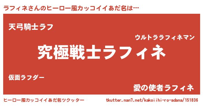 | 恥ずかしいあだ名 | 『ラフィネデラックス』『ラフリンリン』 |