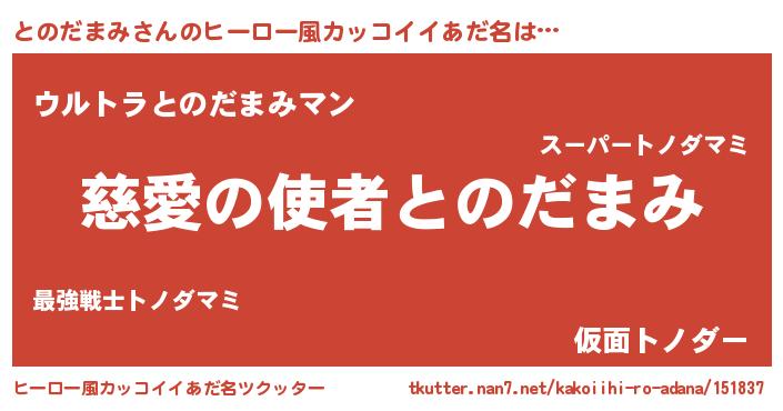 | 肩書あだ名 | 『とのだまみ教授』『とのだまみ総理大臣』 |